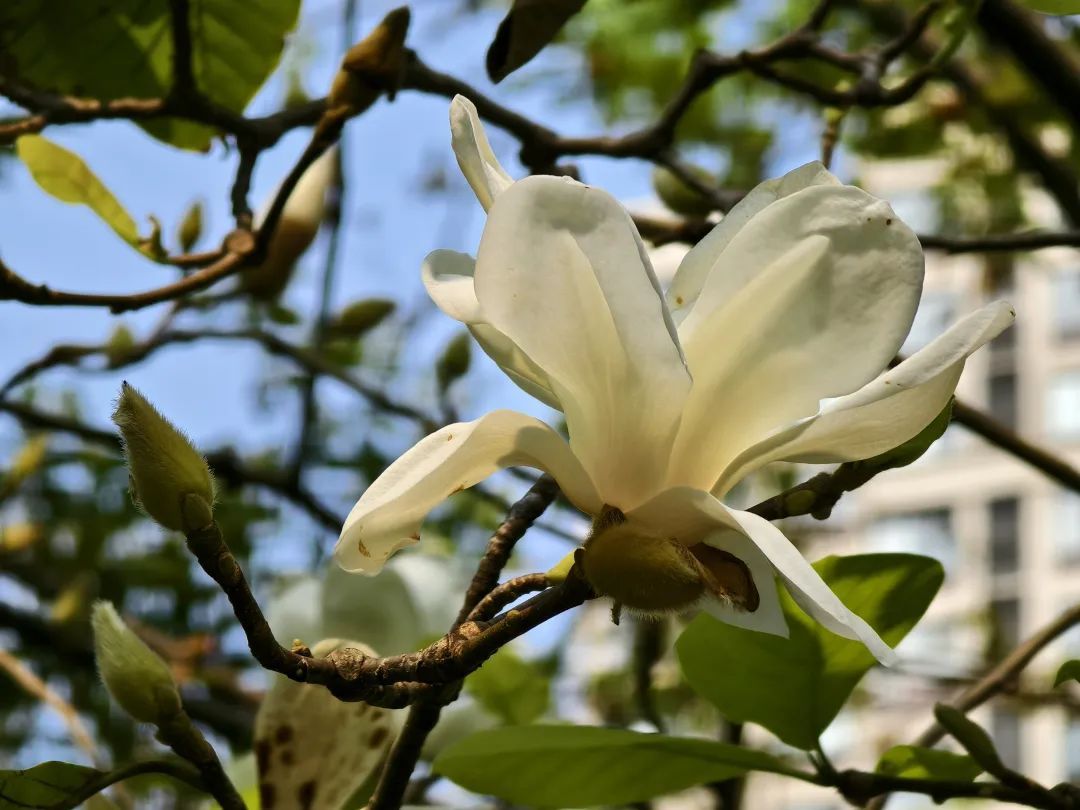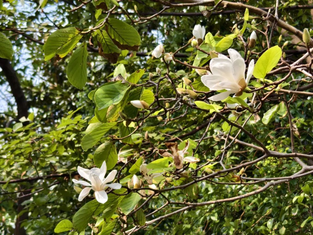 无论如何,这棵秋天开花的白玉兰,也成为了当下的一道风景。