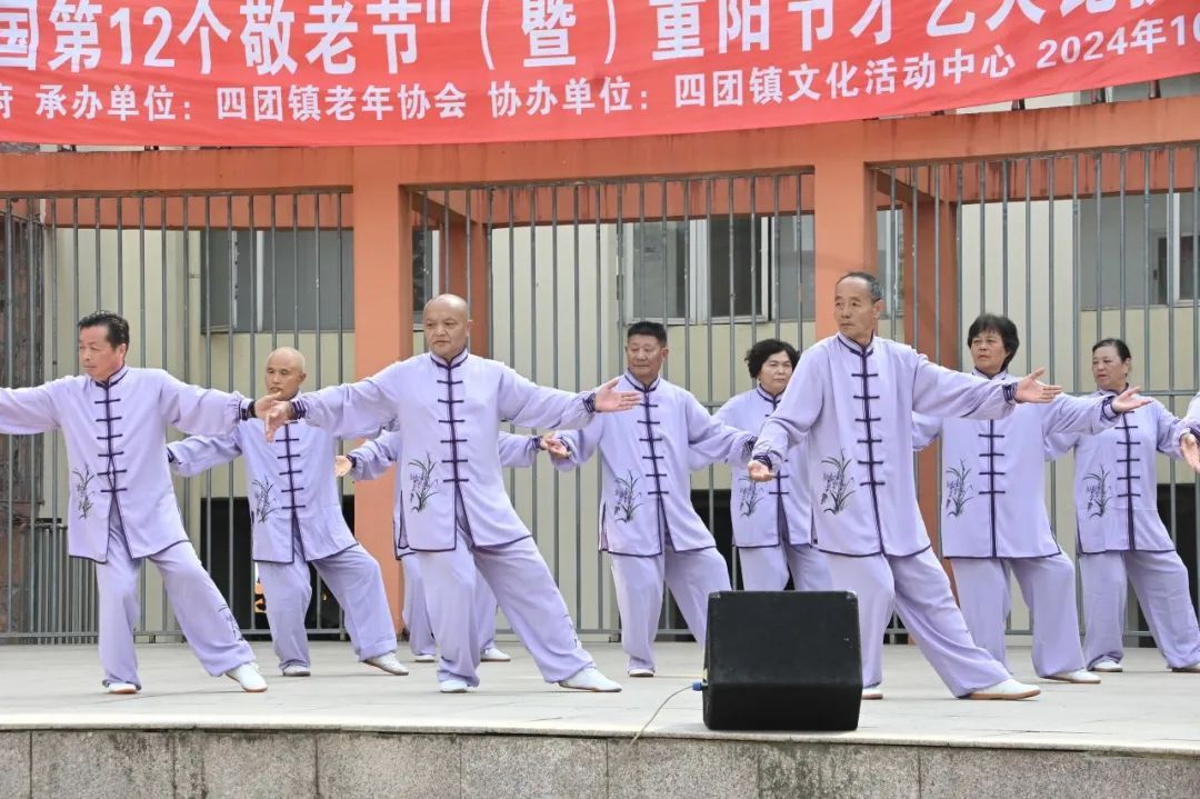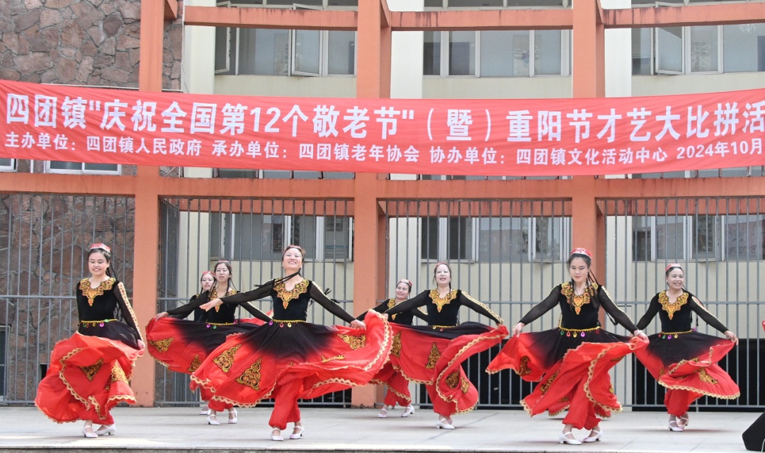 四团镇老年协会的会员们在社区文化活动中心开展了老年才艺大赛,扇子舞、健美操、红军舞、筷子舞等15个表演节目轮番上演,精彩纷呈,赢得了现场观众的阵阵掌声,也展现了四团老年人乐享健康的良好状态。