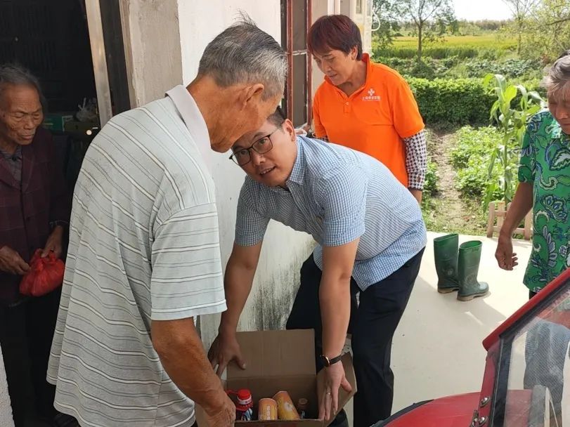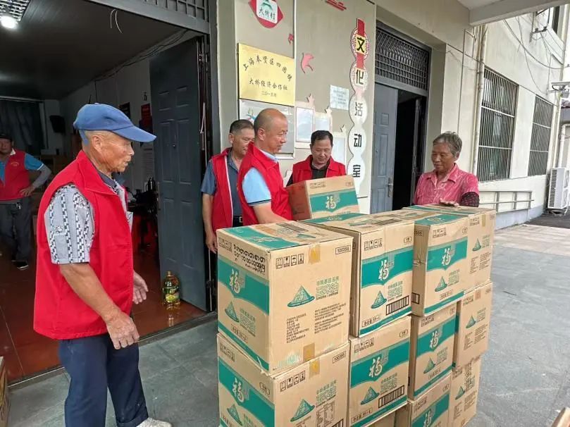 民建奉贤区委第六支部、民建区委青委会,奉贤交能集团、百村集团、南方国际集团、上海农商银行奉贤支行、上海炎垒汽车零部件有限公司、上海柏芝混凝土搅拌有限公司、凌华绿头鸭养殖专业合作社等单位企业分别向四团镇长堰村、杨家宅村、横桥村、邵靴村、五四村、锦港居委、港佳居委、向阳村、农展村、四团村等辖区高龄老人送上爱心捐赠。