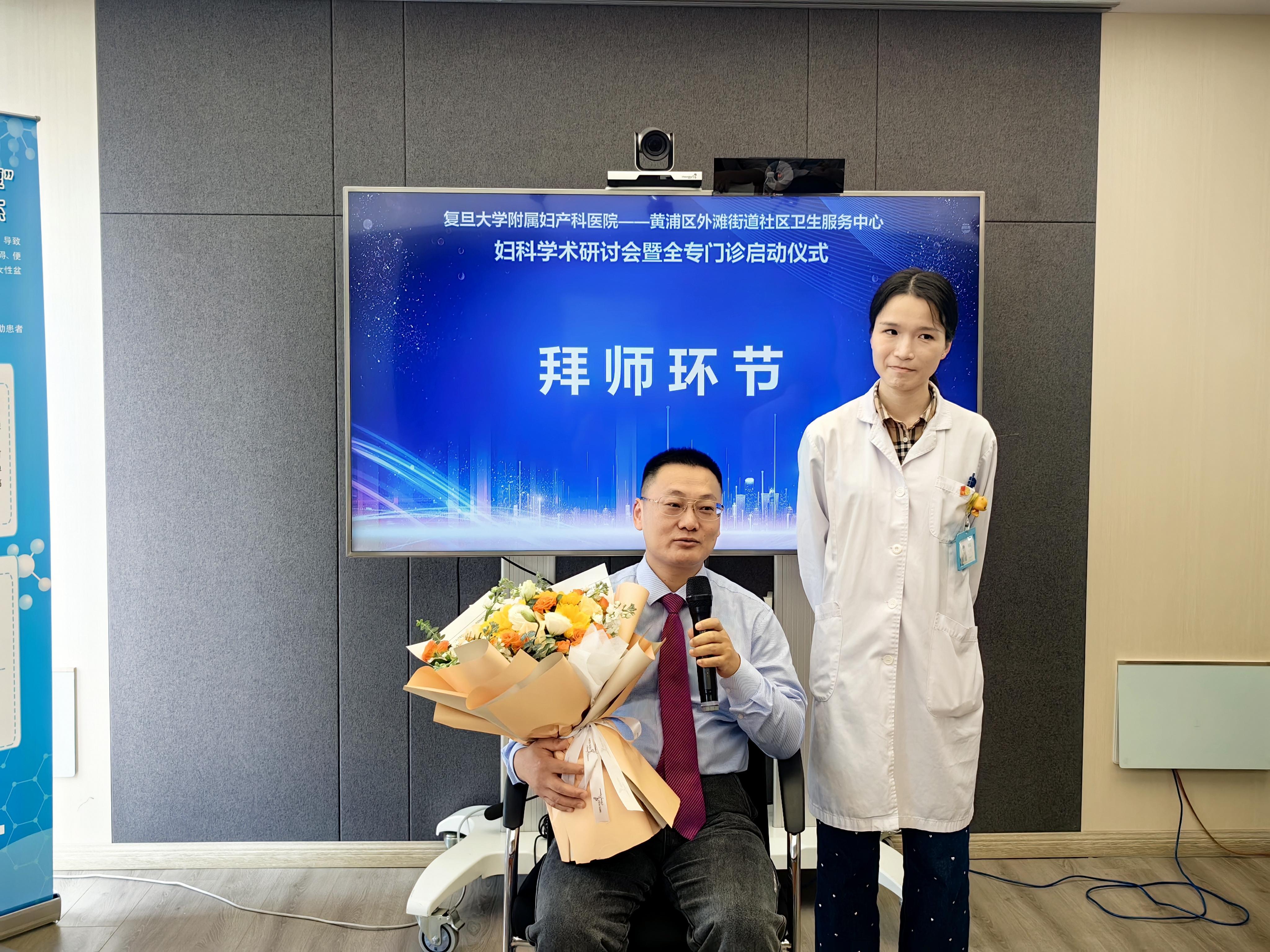 在拜师仪式上,外滩街道社区卫生服务中心的妇科医生陈霞正式拜师复旦大学附属妇产科医院的陈义松主任。这一仪式不仅体现了医学传承的重要性,也为社区医疗人才的培养注入了新的活力。