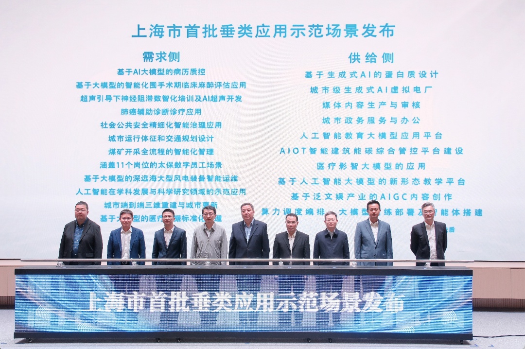 市委网信办、市委金融办、市经济信息化委、市教委、市财政局、市交通委、市卫生健康委、市国资委、市文创办共同发布上海市首批22个垂类应用示范场景,发挥超大型城市中心城区应用场景优势,推进大模型等人工智能新技术、新产品、新模式在徐汇和上海率先运用。