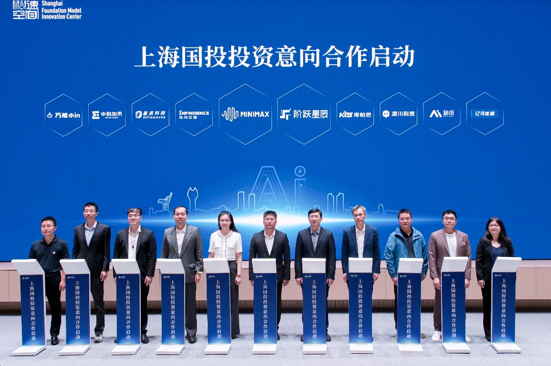 上海国投公司与徐汇区共同为上海人工智能生态基金揭牌,并与稀宇科技、阶跃星辰、无问芯穹、库帕思、基流科技、凌川玉衡、中科加禾、秘塔网络、万能小in、亿可能源10家企业代表共同启动战略合作。