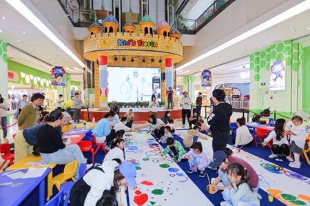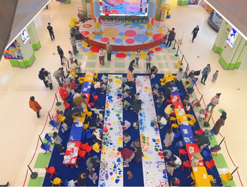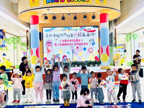 杜莱的鼓励和引导,充分调动起孩子们的情绪,现场观众热情高涨,孩子们自由挥洒画笔,施展艺术天赋,共同完成了色彩缤纷的绘画长卷。最后,孩子们依依不舍地和他们的“艺术启蒙老师”杜莱告别,孩子们表示,这次别样的经历将一直铭刻在心中。