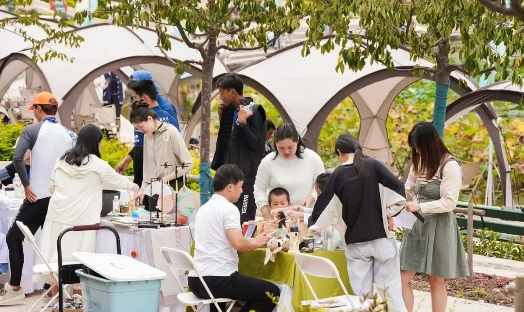 除了竞赛项目,主办方新江湾城街道商会还在活动现场还设计了露营休闲区、活动体验区、中医咨询区和拍照打卡区,热烈的氛围与潮流的户外装置吸引了不少居民游客打卡拍照。