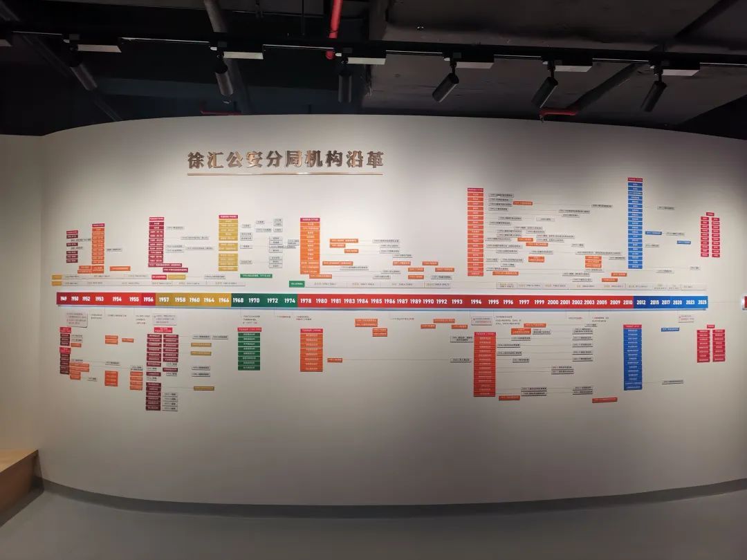 这里记录了徐汇公安的发展历史。1949年5月25日零时五分,当时的常熟分局作为全市第一个向解放军投诚的分局率先被接管。6月2日,上海市人民政府公安局成立,常熟分局、徐家汇分局应运成立;1953年12月,徐家汇分局更名为徐汇分局;1956年2月16日,当时的常熟分局、徐汇分局合并,成为徐汇分局。