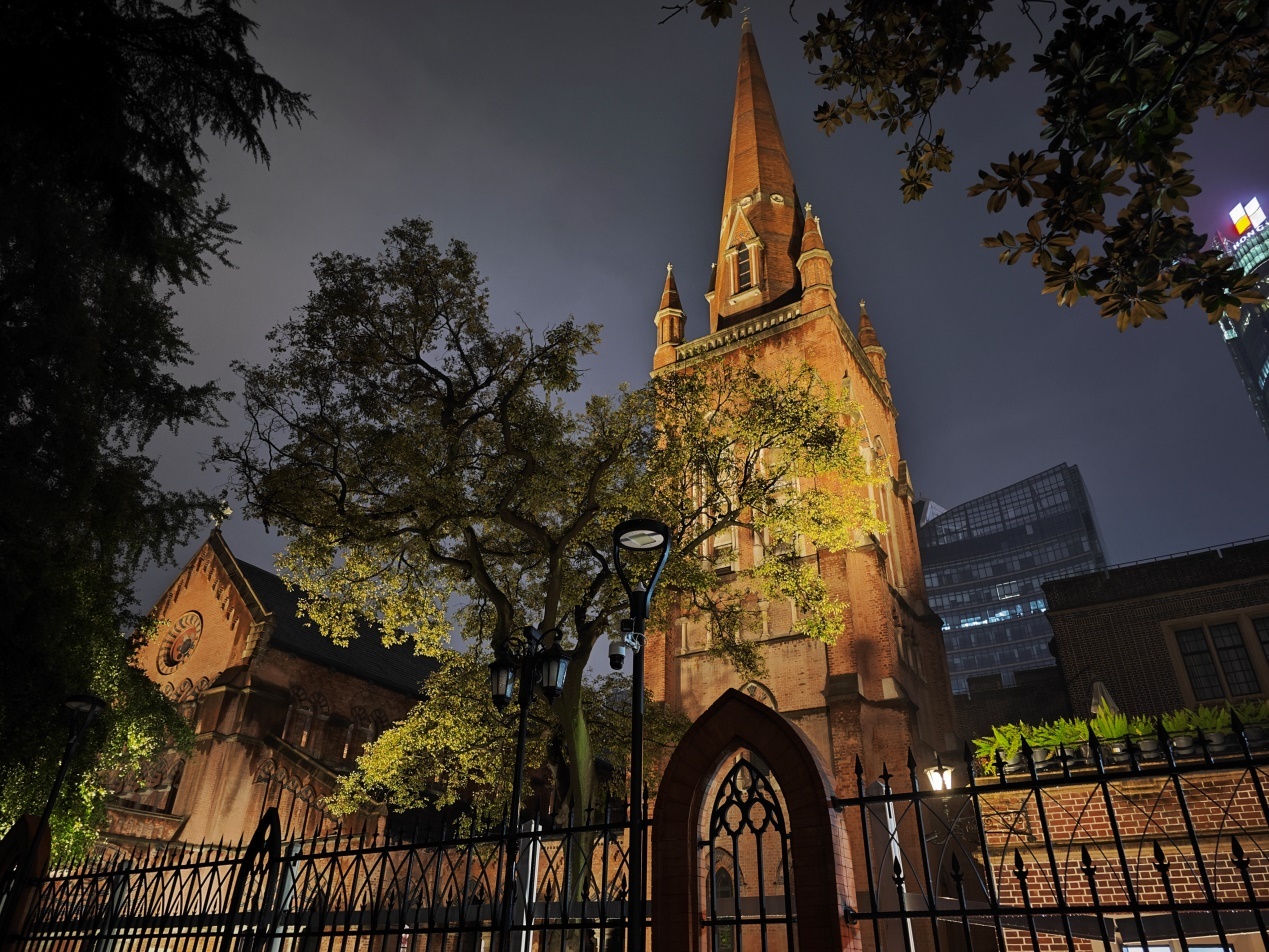 令人惊喜的是,毗邻老市府大楼的圣三一堂恰于10月15日至10月19日期间进行临时性夜景装饰,与老市府大楼灯光形成叠加效应,市民游客将能够首次欣赏到这座建成已逾150年的全国文保建筑的夜景美感。
