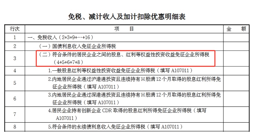 在2024年度汇算清缴时,分别填报《A107010免税、减计收入及加计扣除优惠明细表》、《A107011符合条件的居民企业之间的股息、红利等权益性投资收益优惠明细表》来反映投资收益免征企业所得税情况。
