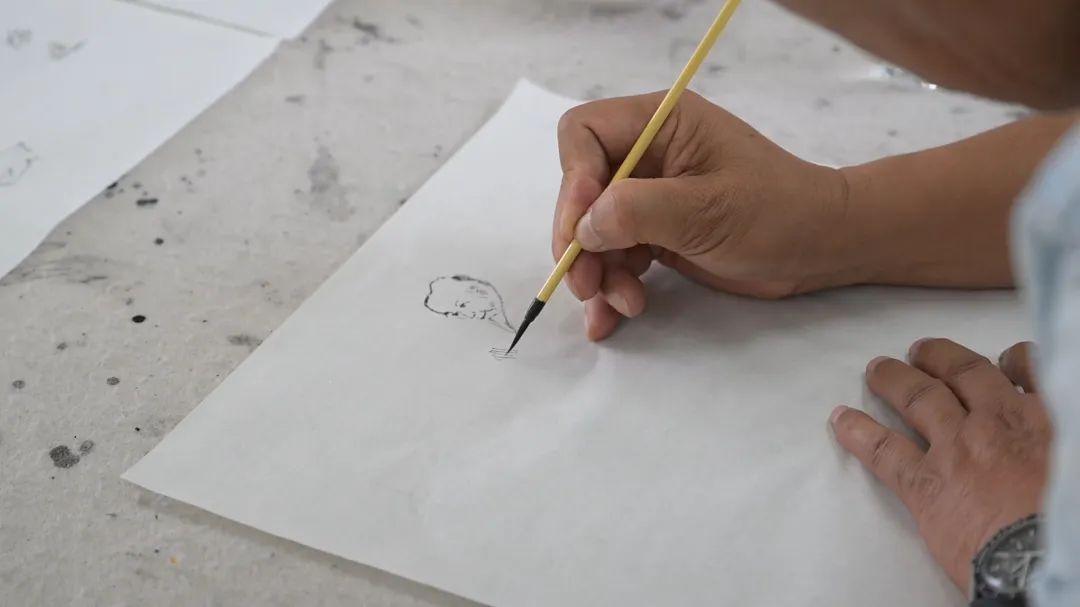 现场,顾航即兴挥毫,创作了一幅《水浒传》中“智真长老”的人物画。从毛笔勾勒人物框架,再到涂抹颜料上色完成画作,整个过程仅10余分钟。顾航说,画多了上手自然就快了,“无他,唯手熟尔。”他也坦言,人物画中最难的是面部细节,因为每个人物的神态表情各具特色,下笔之前需细细揣摩,方能传神。