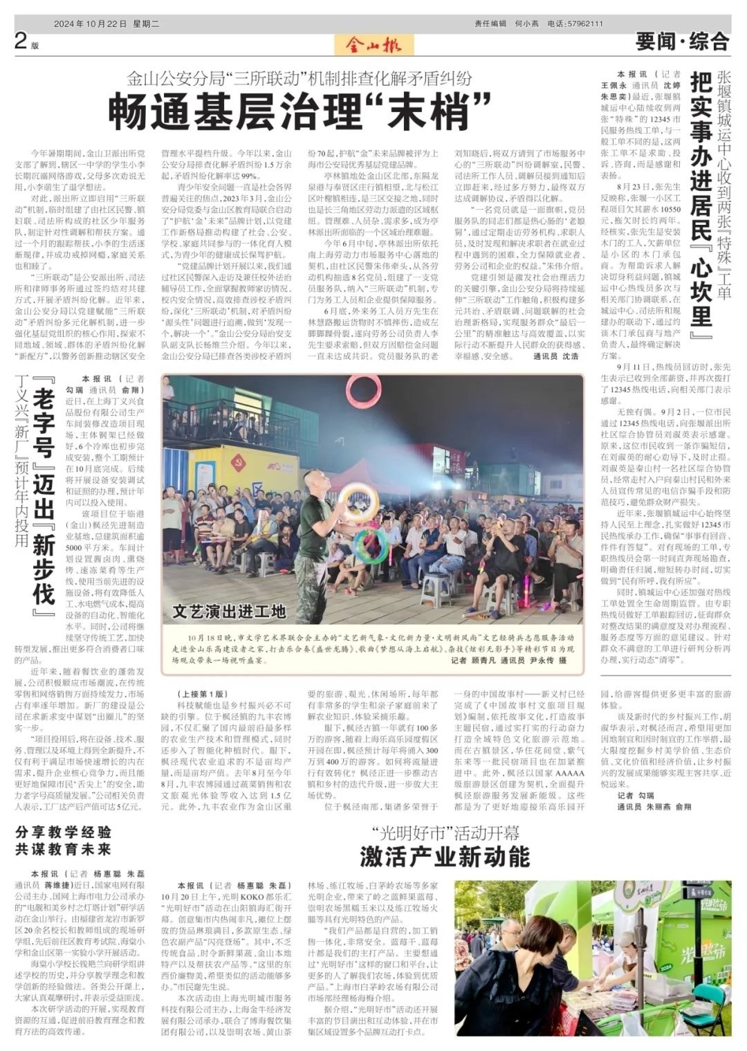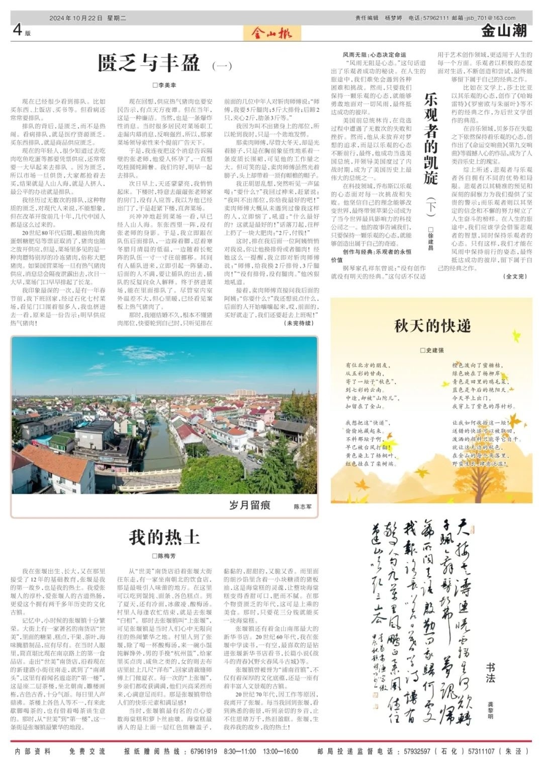 今天,让我们一起来看看10月22日(星期二)的《金山报》吧!此外,你还可以在“上海金山”App查看。