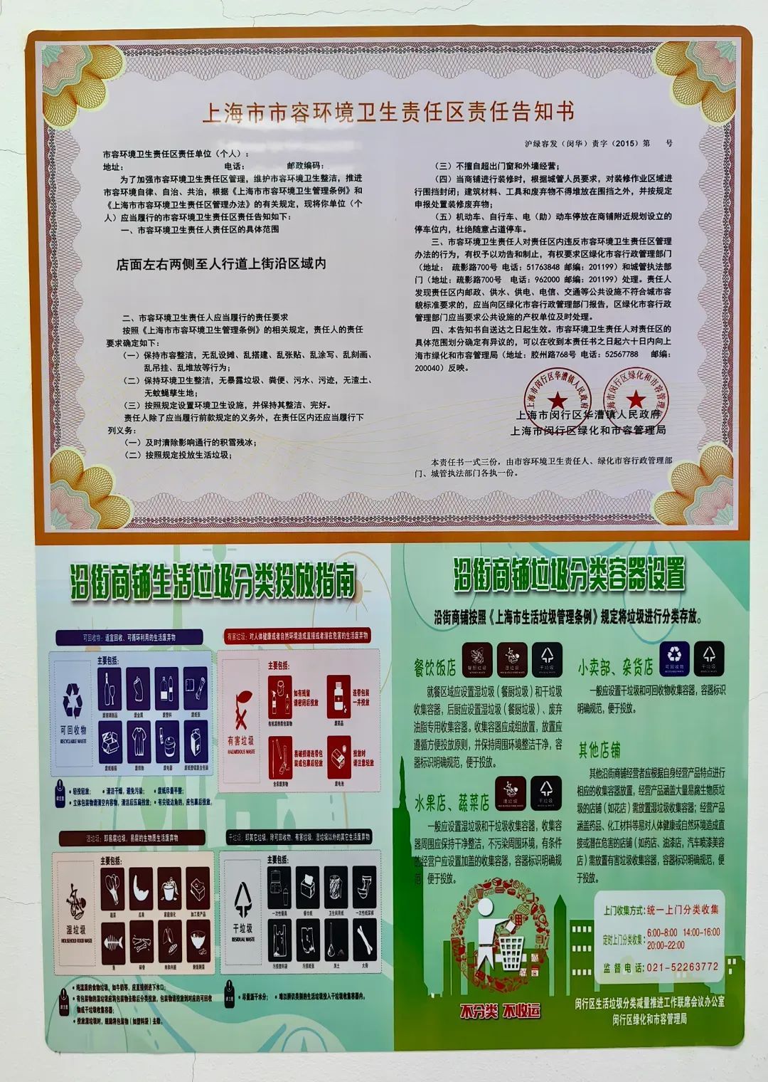 据悉,之前告知书是纸质的,张贴在店铺不到几天就会出现脱落和破损,此次镇城建中心采用pvc材质,不仅美观坚固,还让商铺在一份宣传材料上就能明确责任、垃圾分类投放指南以及分类容器要求,提高商铺对垃圾分类的重视程度,推进精细化分类。