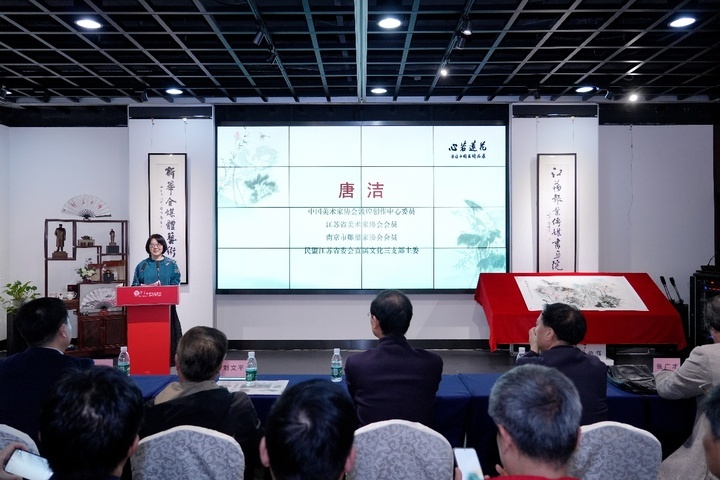 活动当天,江苏省报业协会主席刘文平,江南时报社社长、总编辑,新华文投总经理管云林,江苏省中国画学会常务副会长、南京图书馆原党委书记韩显红,民盟省直工委副主任、南京财经大学食品科学与工程学院教授沈新春等书画名家及文艺界知名人士出席开幕式。管云林表示近年来《江南时报》以文化报道为犁,致力于成为中华文化的守望者、传播者、传承者。用好融媒体资源,分享文化艺术界的创作成果,把优秀作品推介给社会,助力江苏文化强省建设。近年来,从《新华日报》走出了一批在中国画乃至中国现代美术史上卓有成就的画家,唐洁就是其中的一位杰出代表。韩显红随后发言,唐洁以其独特的艺术风格和深厚的文化底蕴,将中国画的传统与现代审美完美融合,创作出一幅幅令人赞叹的佳作。展现了她对生活的理解与感悟。沈新春在赞扬唐洁作品的同时,更为她的画作取得的成果而欣喜,这些作品充分展现了她在中国画领域的深厚造诣和不断创新的艺术追求。