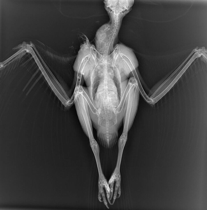 手术非常成功。休养康复3个月后,兽医再次为普通鵟做X光检查。从这张可爱又可喜的“出院照”——X光片上,邓长林看到,普通鵟断掉的骨头已经基本愈合。
