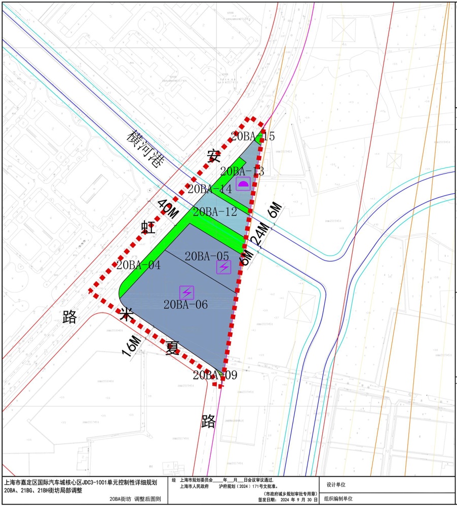 结合米夏路红线调整,环卫设施由21BH街坊调整至20BA街坊,地块编号调整为20BA-13地块,用地面积调整为1577平方米。