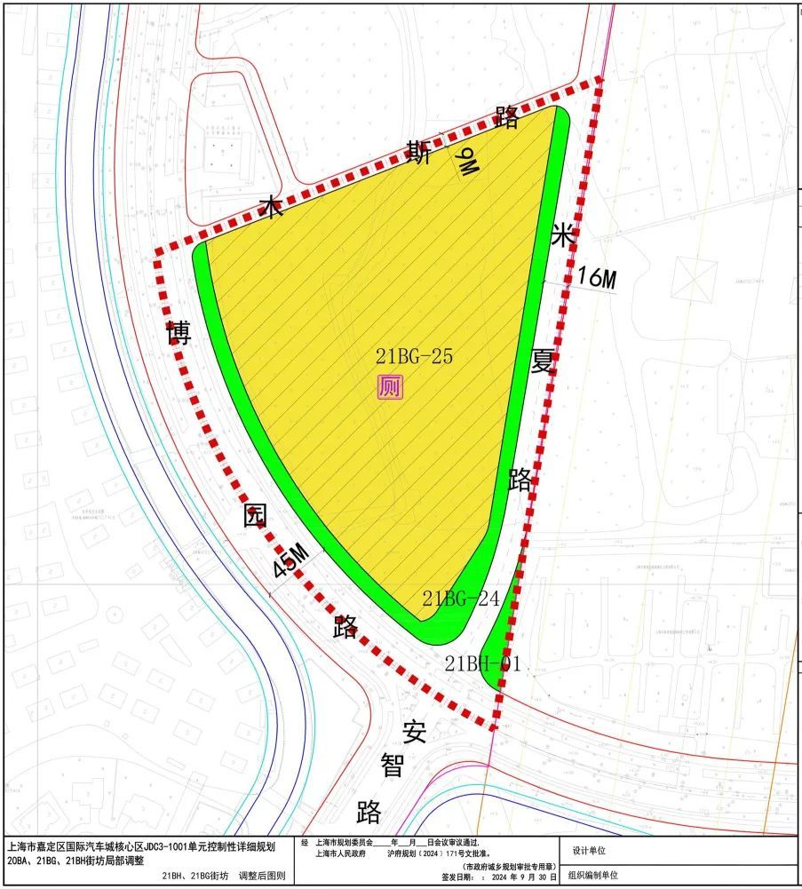 本次调整街坊为汽车城核心区20BA、21BG和21BH街坊。20BA街坊四至范围:东至开发边界、南至米夏路、西至安虹路,总面积约2.59公顷;21BG、21BH街坊四至范围:东至开发边界、西至博园路、北至木斯路,总面积约6.62公顷。