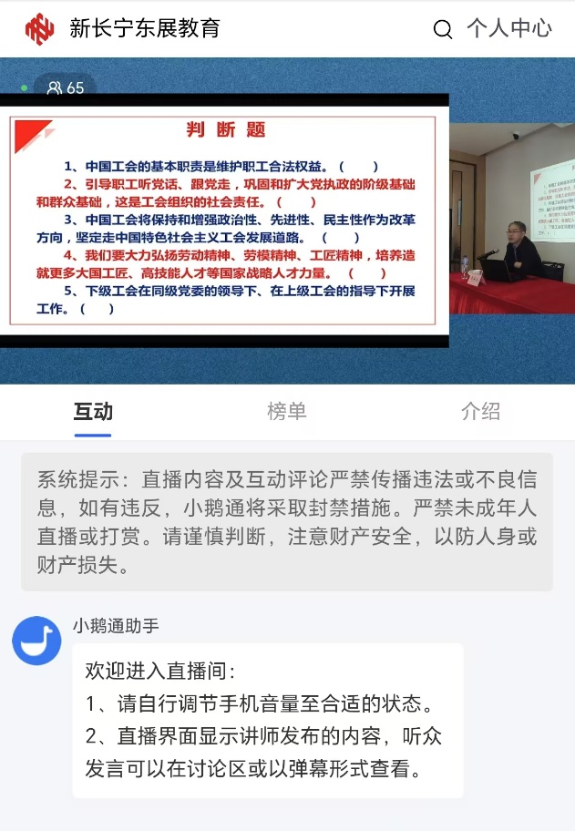 本次培训首日特邀市委党校陈保中教授作题为《新征程推进中国式现代化的纲领性文献——认真学习贯彻党的二十届三中全会精神》的专题辅导报告,旨在进一步夯实工会干部干事创业的思想政治基础。此外,在为期两天的培训中,课程丰富多样且具针对性,既有帮助学员拓展视野的国家发展战略等方面课程,又有工会历史、工会规范化建设、职代会制度、劳动技能竞赛等方面干货满满的课程。老师们通过理论分析、案例讲解、互动问答等授课方式,为帮助学员开展工会工作提供了方向指引。为了让更多工会干部获得学习和提升的机会,本次培训班还进行了全程网络直播,工会干部可以在直播学习的过程中进行互动交流。“虽然接触工会工作有近2年的时间,但是由于公司之前没有相关的参考经验,所以对公司工会工作的开展也都一直是摸着石头过河,通过这场培训让我对工会工作有了全面的认识。”培训班受到了基层工会新任干部的广泛好评,上海金瀚建筑设计装饰工程集团有限公司工会主席杨金钰蕾告诉记者,自公司在2023年成立工会以来,她一直担任着工会主席的职务,平时遇到问题都是请教街道工会干部或者相关同行的工会干部,缺少系统的工会知识和实践经验储备。她说:“这场培训专业性和针对性都非常强,对于我们这些工会新人来说有着很大的帮助,让我对后续开展工会工作有了很强的信心。”此次培训班不仅提升了工会干部的业务能力和综合素质,也为大家提供了一个交流学习、拓展视野的平台。通过2天培训,学员们迅速转变角色,全身心地投入学习,力争在有限的时间里收获更多理论知识和业务本领,为增强服务职工群众能力、提升基层工会工作水平贡献“娘家人”更多的智慧和力量。撰稿/摄影:孔建宏