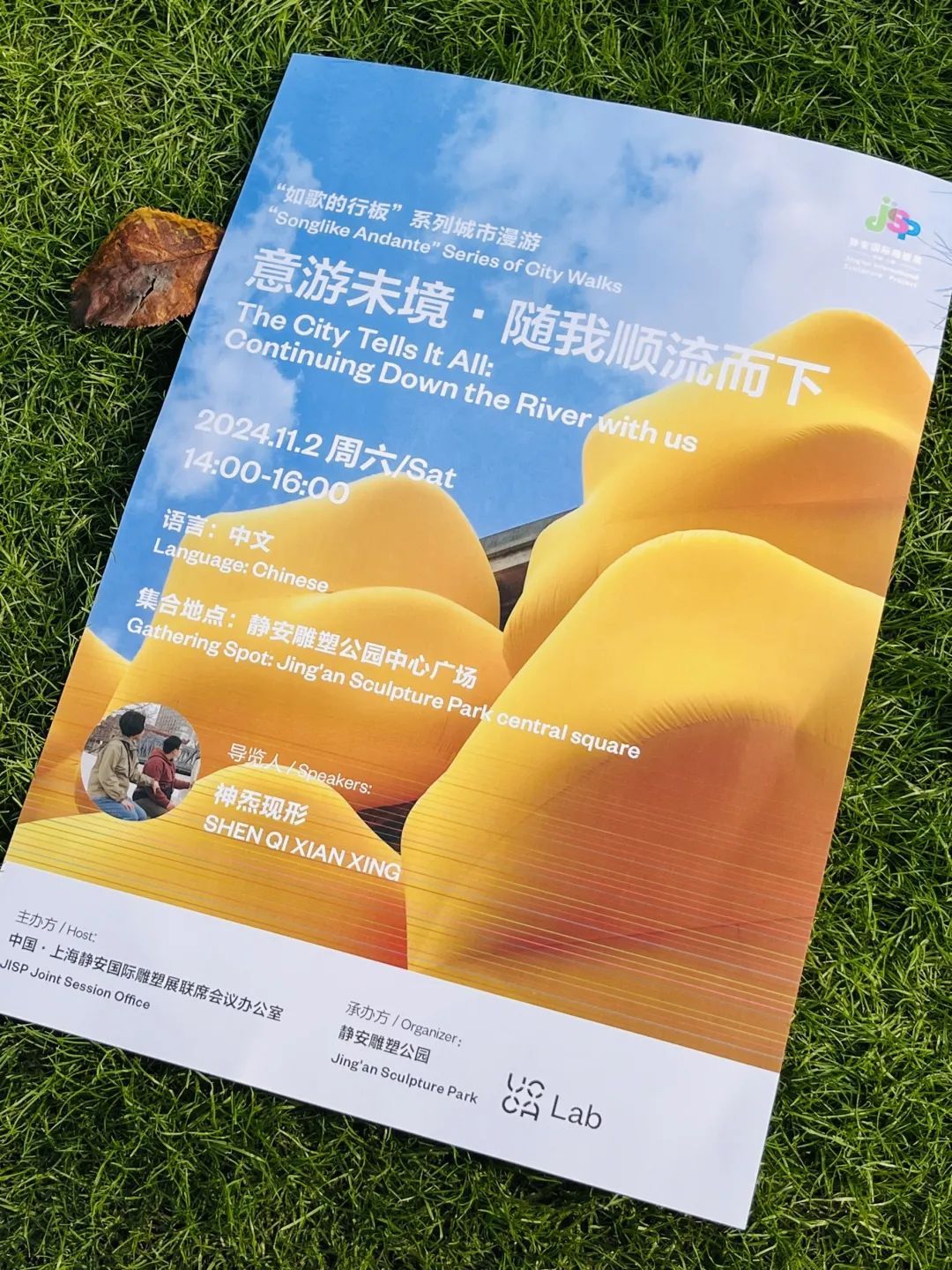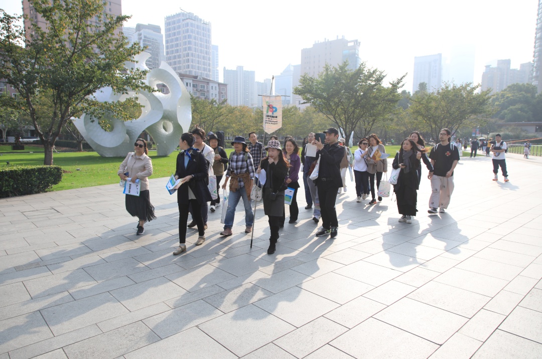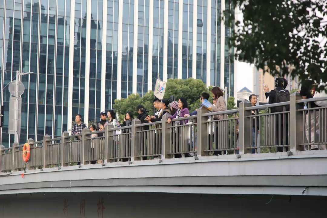 11月2日,30余位市民通过预约报名,参加2024静安国际雕塑展“如歌的行板”系列城市漫游“意游未境·随我顺流而下”,跟随艺术小组“神炁现形”的边讲、边演的导览,从静安雕塑公园出发,行至苏州河上的浙江路桥,沿水流自西向东,顺流而下。