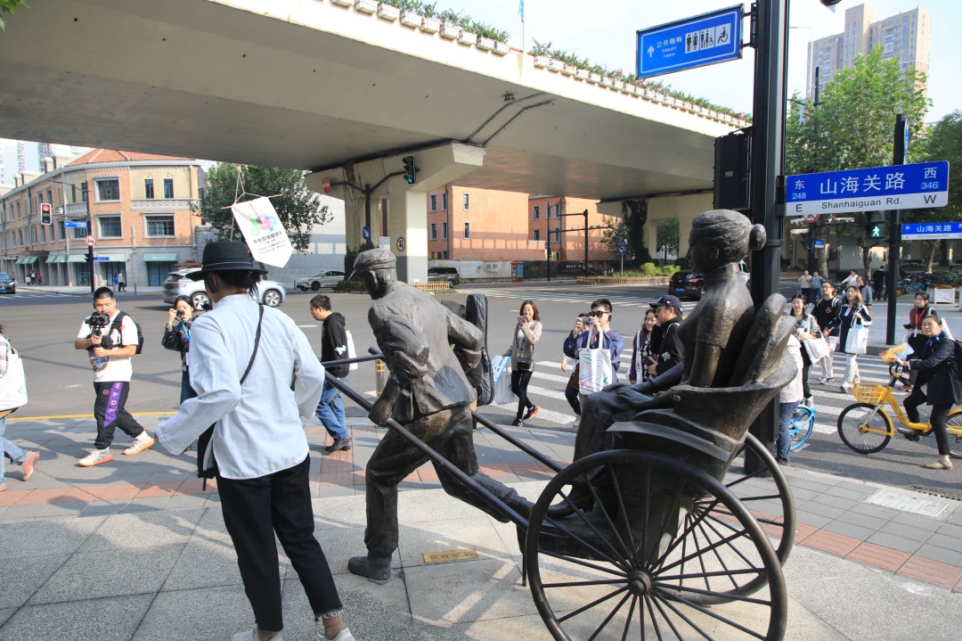 值得一提的是,讲述历史、讲述雕塑是这场行走的“明线”,在参与者的导览耳机中还有一条“暗线”让人仿佛“穿越”回上个世纪二三十年代的老上海。