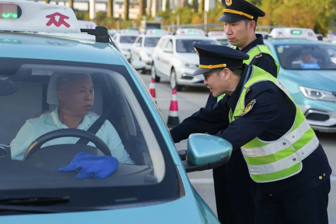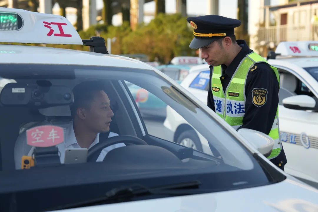 交通执法人员在国家会展中心、省界道口、重要宾馆、交通枢纽等驻守维护营运秩序,严查违法违规行为。