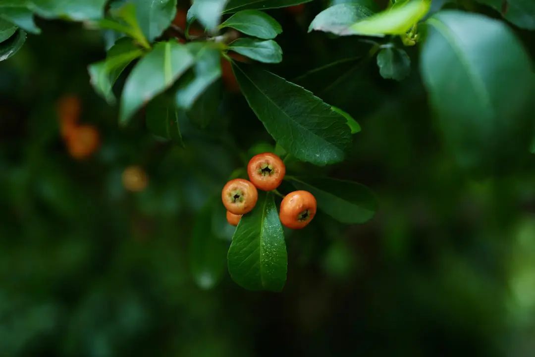 南天竹的果子密集小巧,喜庆养眼的红色让人挪不开视线。橙色的火棘果在一丛绿色里对路人眨眼。银杏树上的白果应声落地,圆滚滚密集躺在泥土里萌萌哒。广玉兰的果实像一枚小火炬,也像放大三四倍的松果。小编提醒,果子虽然看着可爱千万别随意采摘食用哦!