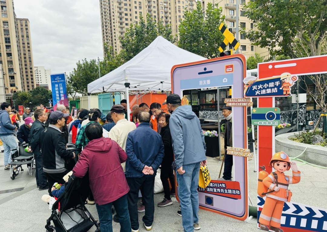 活动现场,除了进行演练和体验环节外,还设置了宣传体验互动区域,围绕消防安全、铁路护路、反邪教、电信反诈、扫黄打非等方面开展综治宣传。通过展板展示、设摊咨询、有奖问答、派发宣传资料等形式,引导居民群众积极参与平安江湾建设,强化居民在家庭火灾防范、电动自行车充电安全、铁路护路、禁毒、反诈、反邪教等方面的意识和防范能力,活动共摆放展板30余块,发放各类宣传资料宣传品1000余份,受众200余人。