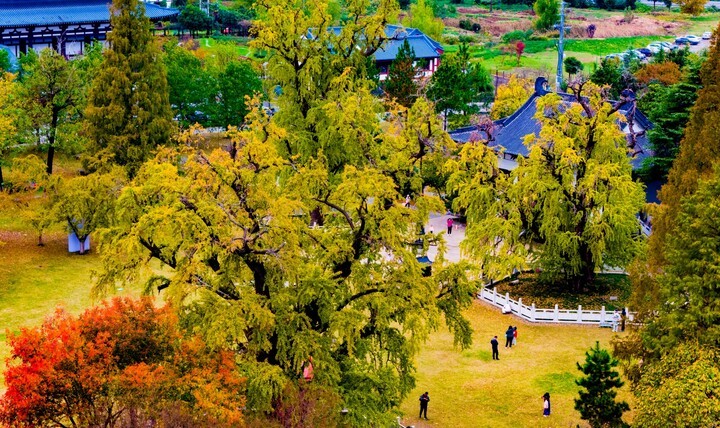 浦口汤泉惠济寺公园内的三棵银杏。视觉江苏供图。