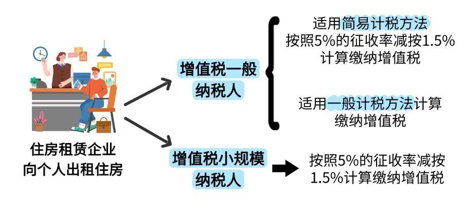住房租赁企业中的增值税一般纳税人向个人出租住房取得的全部出租收入,可以选择适用简易计税方法,按照5%的征收率减按1.5%计算缴纳增值税,或适用一般计税方法计算缴纳增值税。