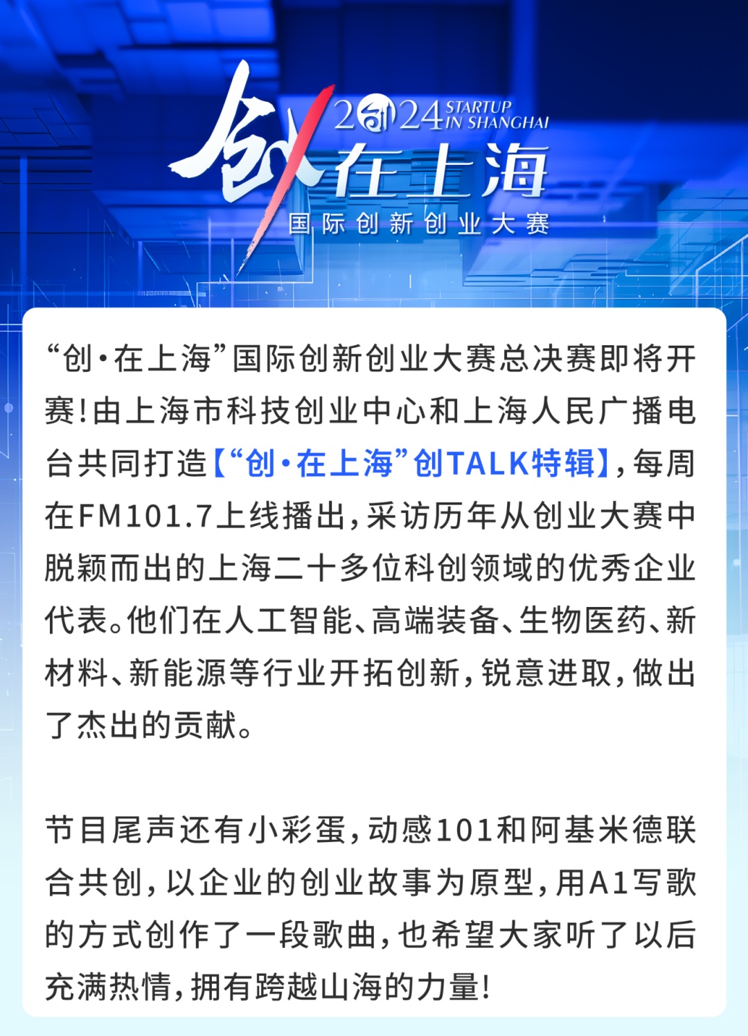 2024年“创•在上海”国际创新创业大赛首次设立【总决赛】,众多优秀参赛企业即将顶峰相见!
