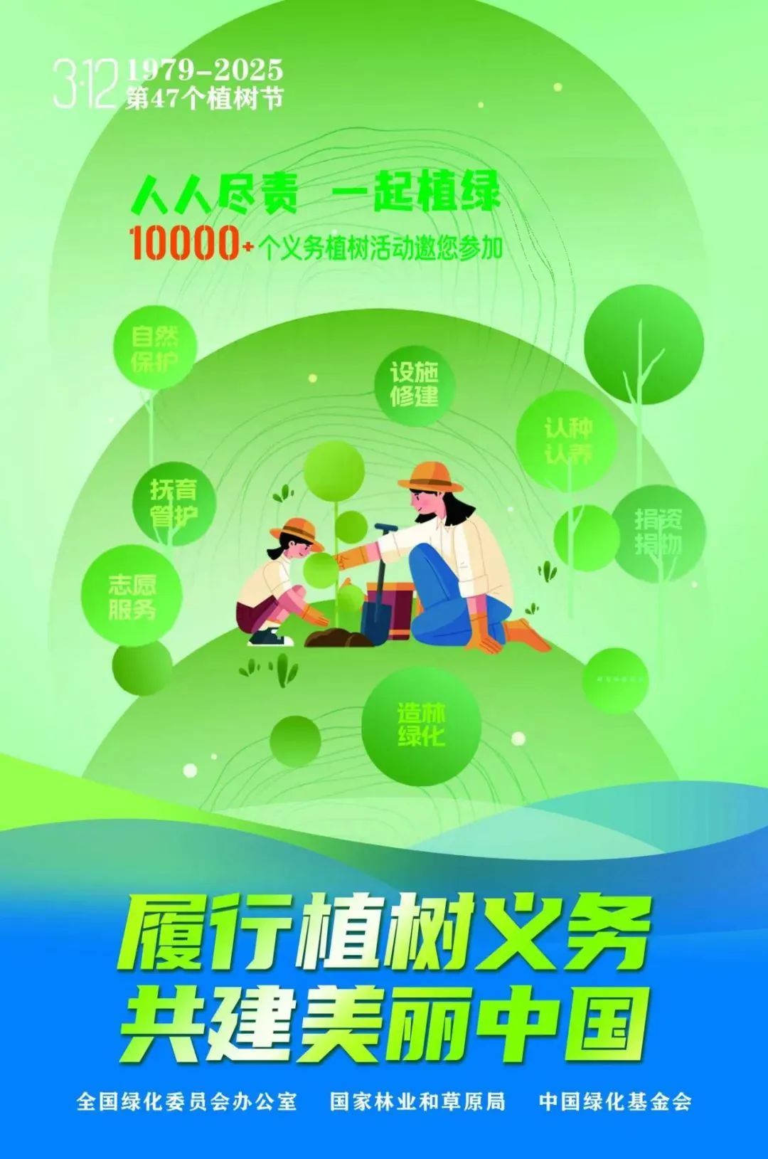 今年3月12日是第47个中国植树节。1979年2月23日,第五届全国人民代表大会常务委员会第六次会议,根据国务院的提议,为了动员全国各族人民植树造林,加速绿化祖国,决定于3月12日为我国的植树节。