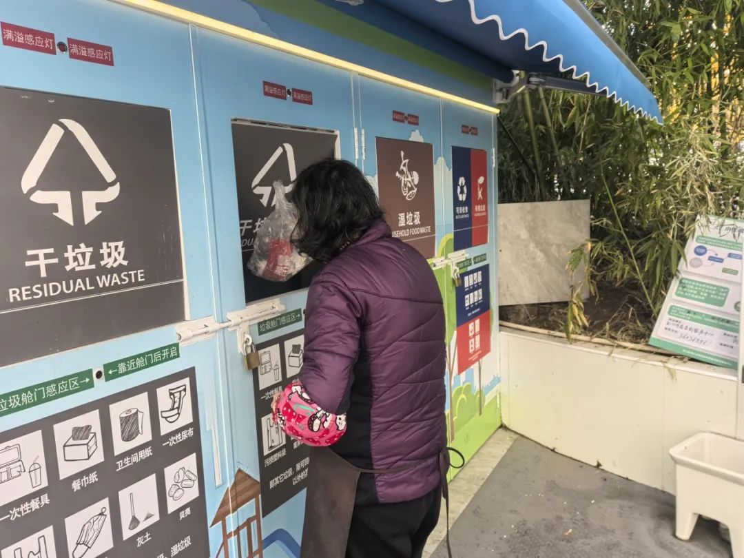 智能垃圾箱房的“上岗”,助力了精准投放,通过智慧科技手段的应用,实现了居民无接触式生活垃圾投放,也让小区的人居环境进一步提升。