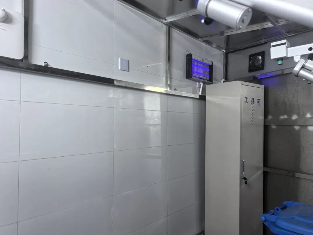 垃圾满溢提示也是这次改造的“重头戏”。垃圾箱房内安装了监控设施,实时监控桶内的情况,一旦出现垃圾满溢状态,门前的指示灯就会亮起。垃圾箱负责人看见灯亮了以后,会及时换桶,确保垃圾箱房时刻保持干净整洁。除此之外,升级改造后的垃圾箱房还配置了除臭、灭蚊、排风等设备,位于垃圾箱房的一侧还安装了洗手池,便于居民扔完垃圾后可以洗手清洁。