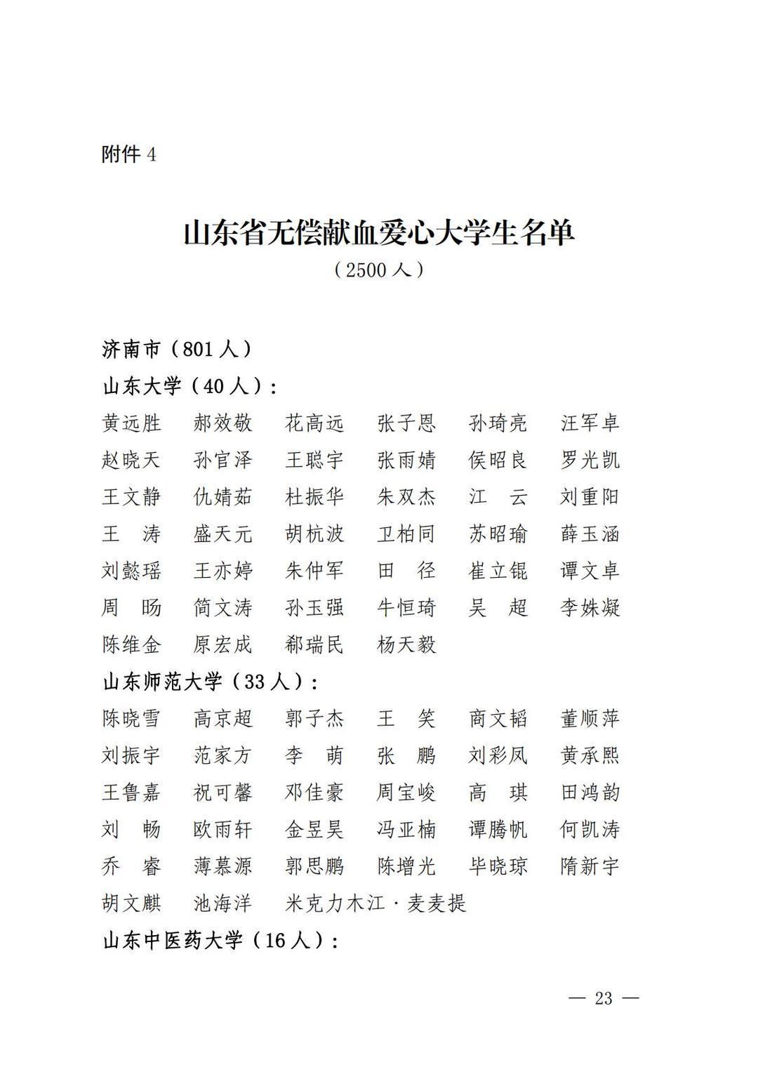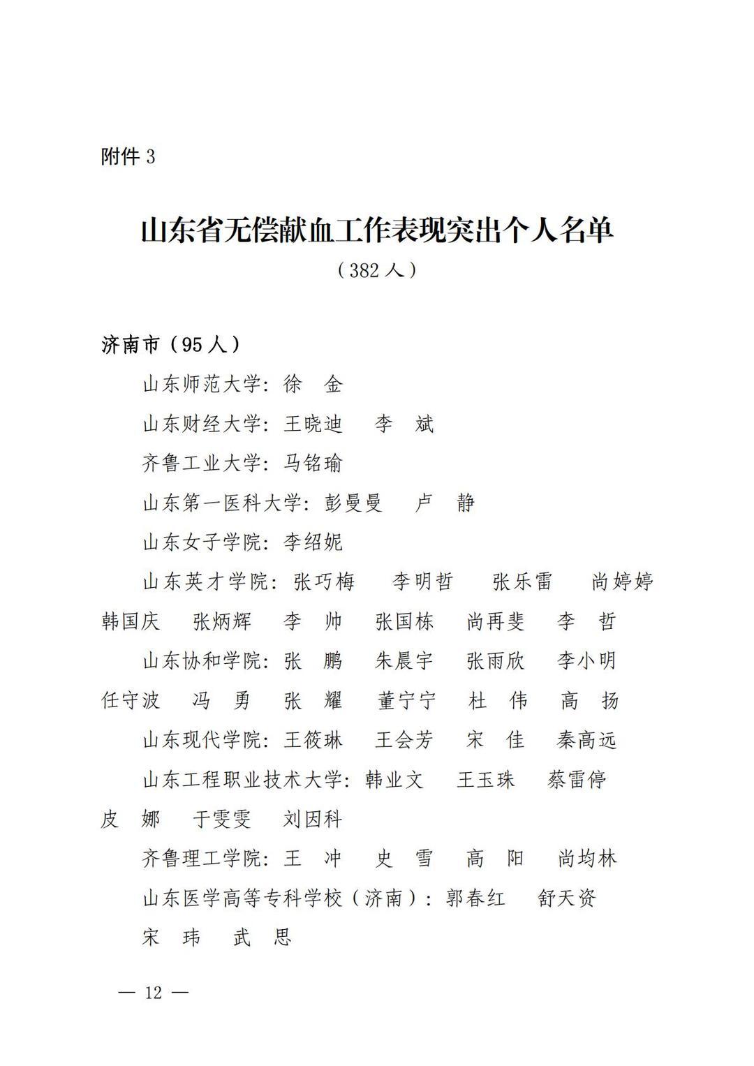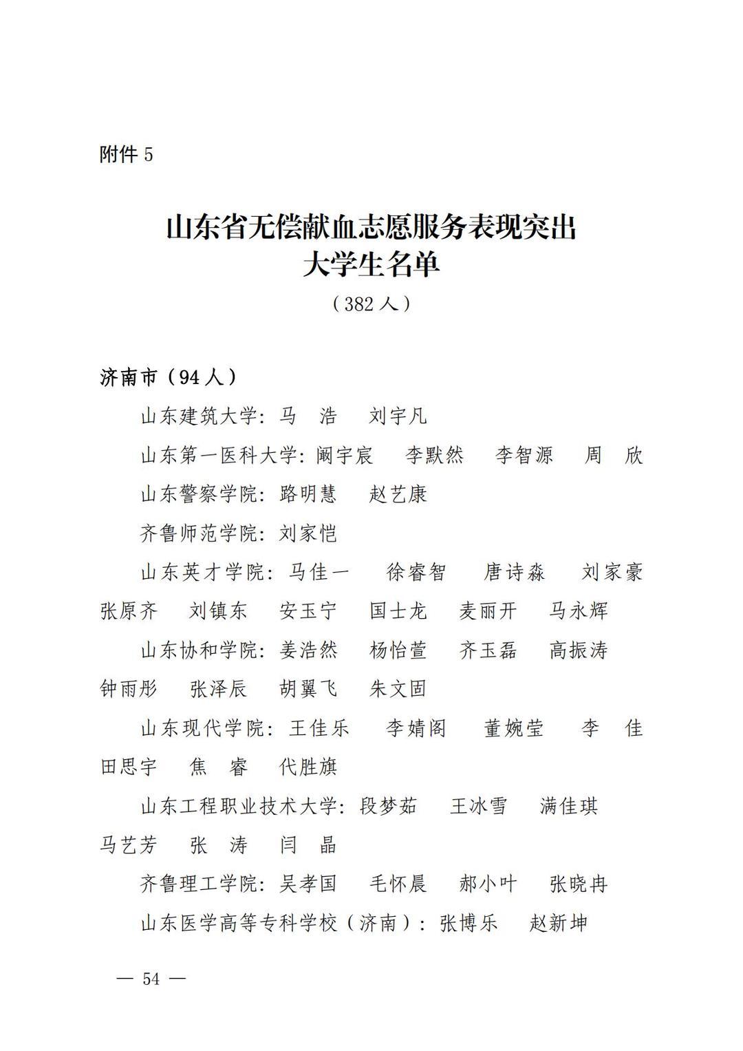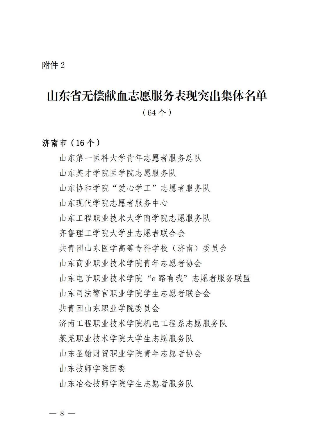 近日,山东省卫生健康委、省教育厅、省人力资源社会保障厅、团省委、省红十字会等五部门联合发布《关于表扬2024年度山东省高等院校和中职学校无偿献血、造血干细胞捐献表现突出集体及个人的通报》,确定对山东第一医科大学等65个无偿献血组织表现突出学校,山东第一医科大学青年志愿者服务总队等64个无偿献血志愿服务表现突出集体,徐金等382名无偿献血工作表现突出个人,黄远胜等2500名无偿献血爱心大学生,马浩等382名无偿献血志愿服务表现突出大学生,山东科技大学等14个山东省造血干细胞捐献表现突出学校给予通报表扬。