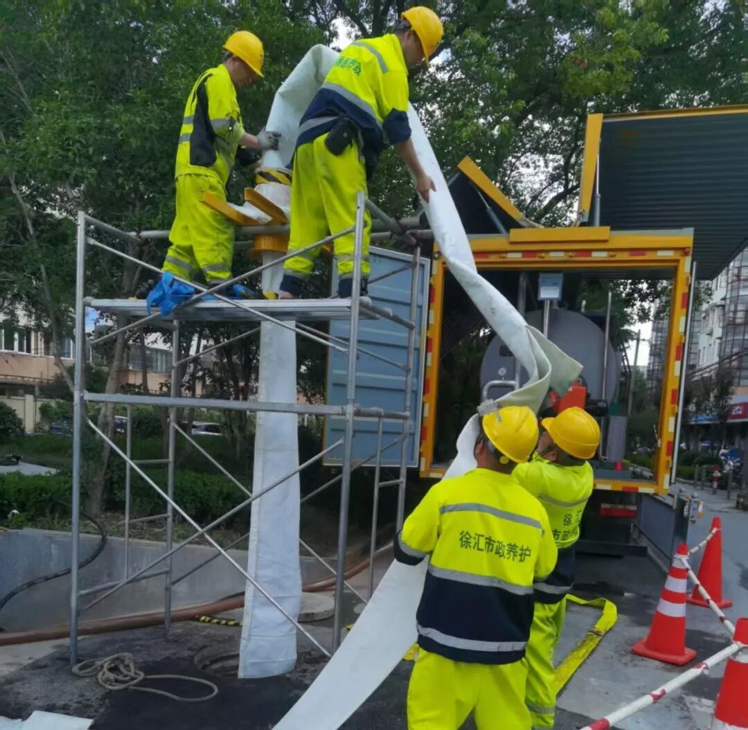 据悉,寿昌坊是个建成于1986年的老社区,地下管网因年久失修,曾多次出现雨天积水、污水外溢问题。2025年新年伊始,周边小区的管道堵塞问题愈发严重。面对群众诉求,寿昌山居委会在联合物业自行处置无果后,通过“民情快办”网格直通渠道迅速将情况上报街道城运中心。街道管理办接单后,第一时间启动应急响应,工作人员直奔现场勘察,定下“先应急、再根治”的两步走策略:紧急调用环卫抽粪车抽排9车污水,快速缓解外溢;将问题同步推送至区水务中心、徐汇市政养护公司等单位,运用专业工具对污水总管进行疏通。经初步疏通,堵塞问题得到初步缓解,小区污水开始流动,异味减轻,居民生活秩序得到保障。然而,这只是“治标”,要彻底解决还得“治本”。