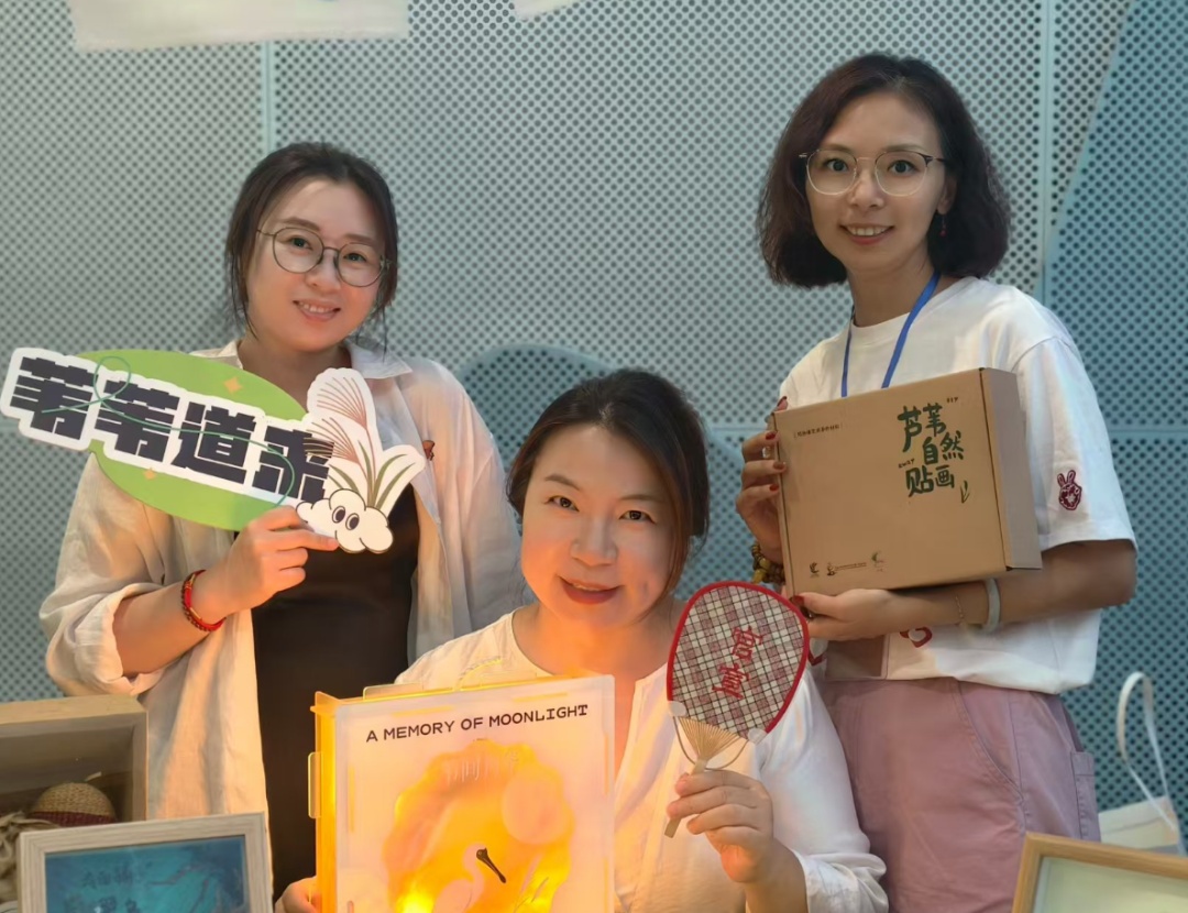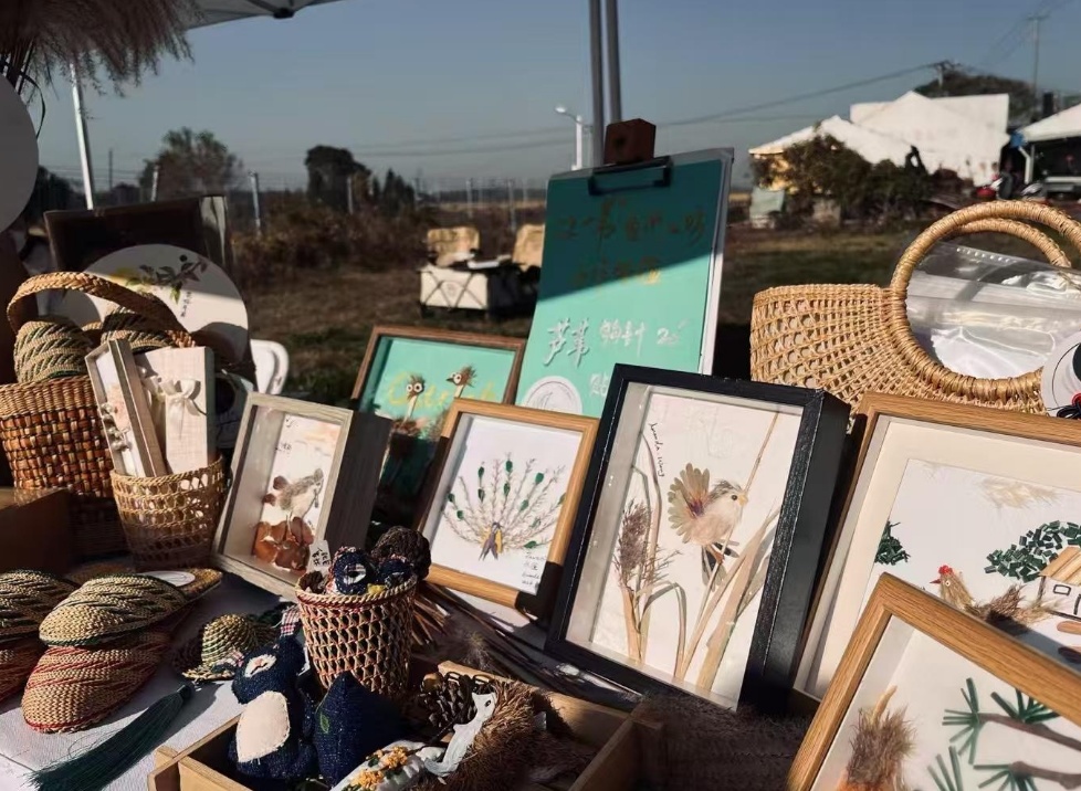 此外,黄佩佩还与徐行草编文创馆特聘高级工匠师阎淮平携手,共同推出了采用点翠工艺制作的芦苇发簪、芦苇项链等产品,并且让这些产品通过参与各地文创市集,走上更大的舞台。