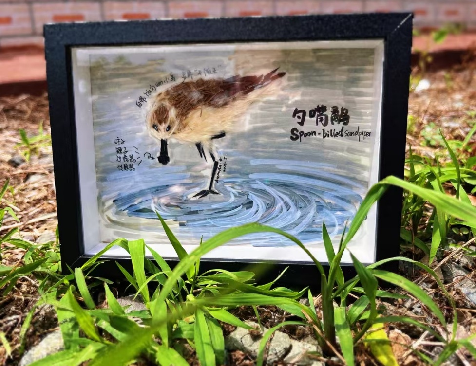 团队中的王洪曾担任森马服装设计师,如今将美学素养与结构思维融入自然课程开发。她以芦苇为媒介,设计出“东滩珍稀鸟类”“东滩湿地景观”“二十四节气”等多个主题贴画课程,涵盖白头鹤、黑脸琵鹭等湿地明星物种,以及东滩夕阳、观鸟平台等典型景观,让自然教育兼具知识性、艺术性与情感链接。