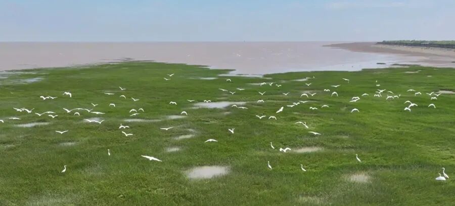崇明东滩核心区域面积约241.55平方公里,是鸻鹬类等迁徙水鸟的关键中途停歇站。芦苇约占总面积的70%,不仅是湿地生态系统的主要植物,更在固堤净水、调节气候、为鸟类提供栖息环境中发挥着重要作用。