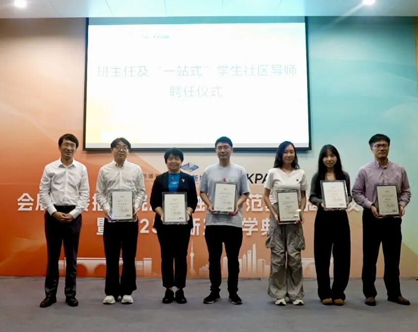 当天,会展与传播学院2025级学生代表以及新生班主任代表分别发言,并为新生班主任及 “一站式” 学生社区导师颁发聘任证书。