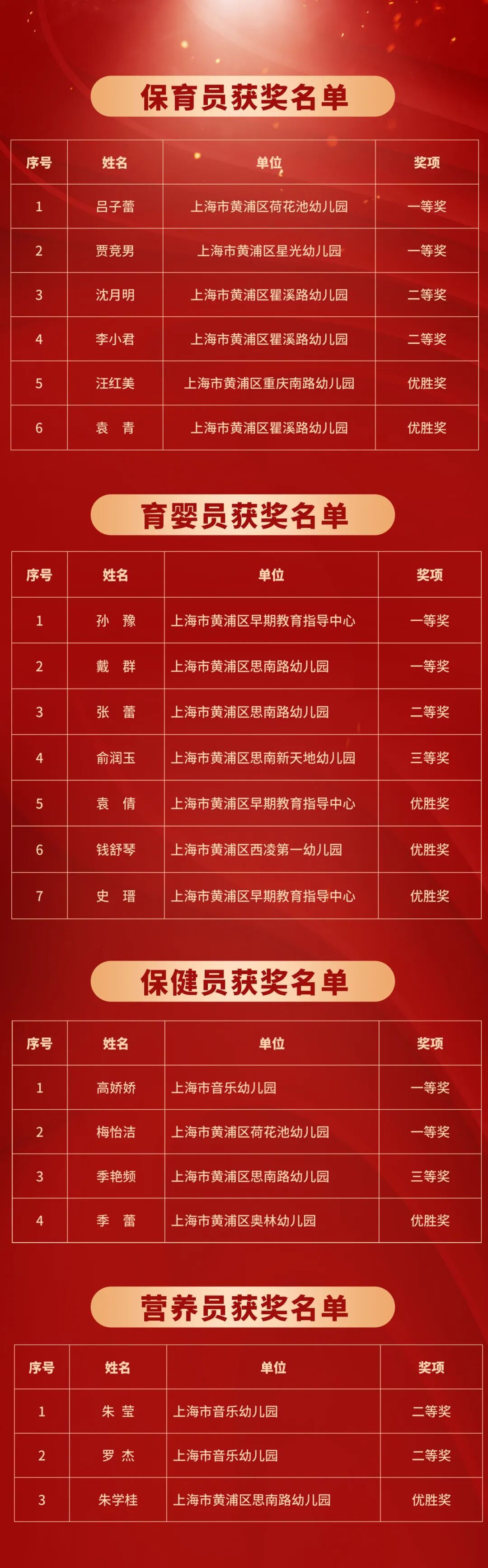 “2025年上海市托幼职业技能大赛”黄浦区获奖名单