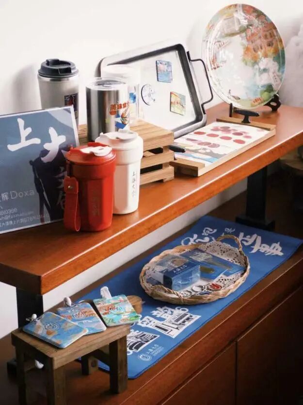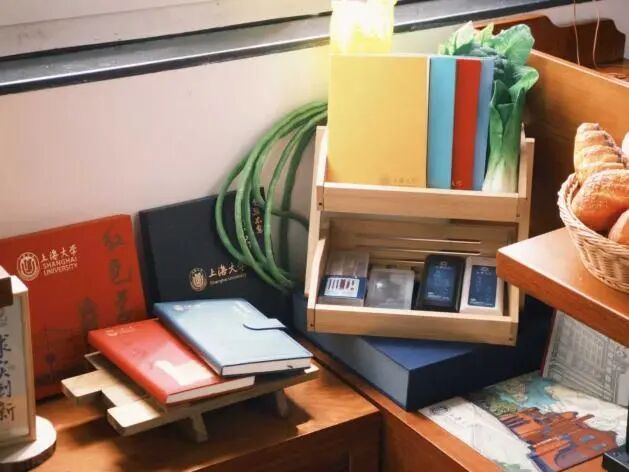 餐厅中设置了上大文创展示区,从精美文具、特色潮流商品到典藏纪念物品、日常实用好物,每一样都设计感满满,融入最亲切熟悉的上大元素!自用相赠两相宜~