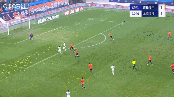 第30分钟,前场左侧维塔尔送出精妙长传打穿海牛防线,莱昂纳多跟刘若钒双双拍马赶到,最终由莱昂纳多挑射入网,海港2比1反超。