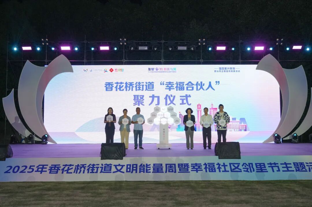 仪式上,香东、香融、香北三大综合网格与三家“幸福合伙人”代表,通过拼图装置完成“幸福联动”,推动网格精准传导治理需求、合伙人定向注入资源、村居落地实践项目,助力形成“邻里互助、文化共融、文明共创”的治理合力。