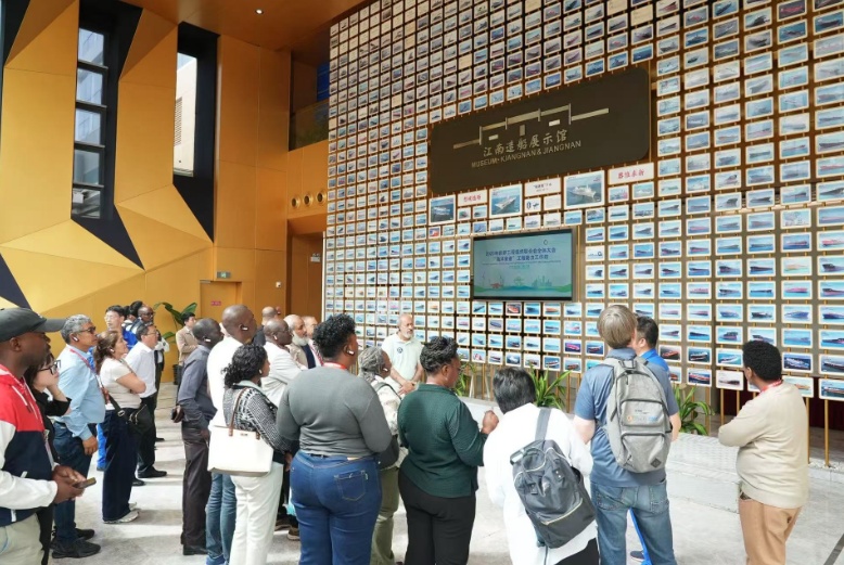 从现代化的港机基地移步至承载着百年民族工业精神的江南造船,外宾们经历了一场从历史到未来的穿越之旅。在江南造船展示馆的照片墙前,一部从小火轮到航母的奋斗史徐徐展开;而在5G智能智造实验室、焊接实验室和舱室实验室,扑面而来的是5G、智能焊接等尖端科技带来的未来气息。