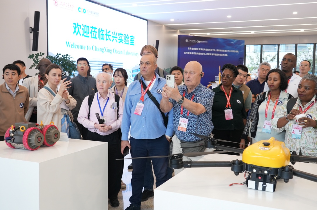 行程的最后一站,是驱动整个产业链不断前行的“最强大脑”——上海长兴海洋实验室。在成果展厅,从绿色智能系统到深海科技装备,一项项前沿成果令外宾们目不暇接。走进智能制造与绿色动力大楼,外宾们则亲眼见证了实验室如何将科技创新工程放大,转化为现实生产力。