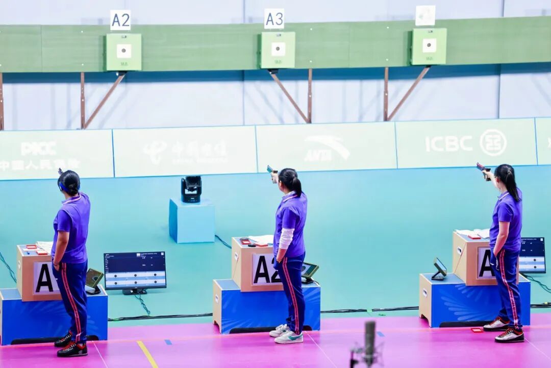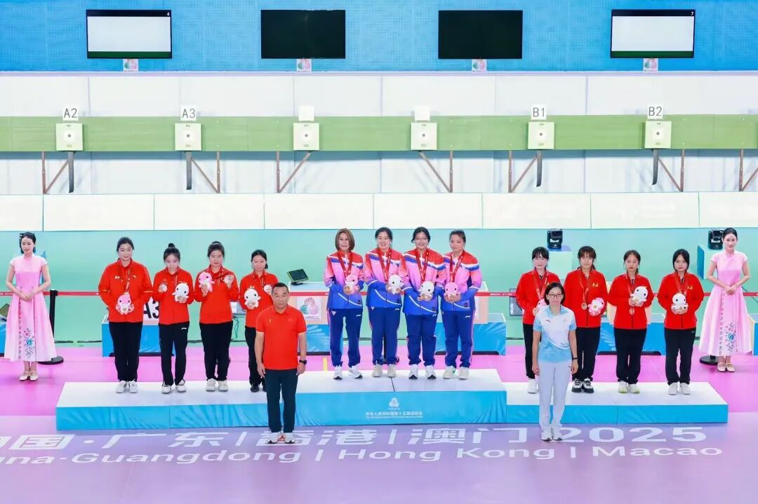 在10月16日进行的全运会射击项目女子10米气手枪个人决赛中,姜冉馨为上海队夺得一枚铜牌(相关链接)。同时在团体赛资格赛中,姜冉馨、沈奕瑶、张绮组成的上海队以1745环的总成绩超越中国队在2025年射击亚锦赛中创造的1740环的团体世界纪录。今天上午进行的团体决赛中,第一轮,上海队先得2分,随后河北队连续得分,以6:2领先。上海队随即叫了一个暂停,暂停回来后上海队迅速调整状态,连续六轮得分,比分来到14:6。河北队扳回2分后,上海队一鼓作气,以16:8夺得冠军,“射”下这枚沉甸甸的金牌。