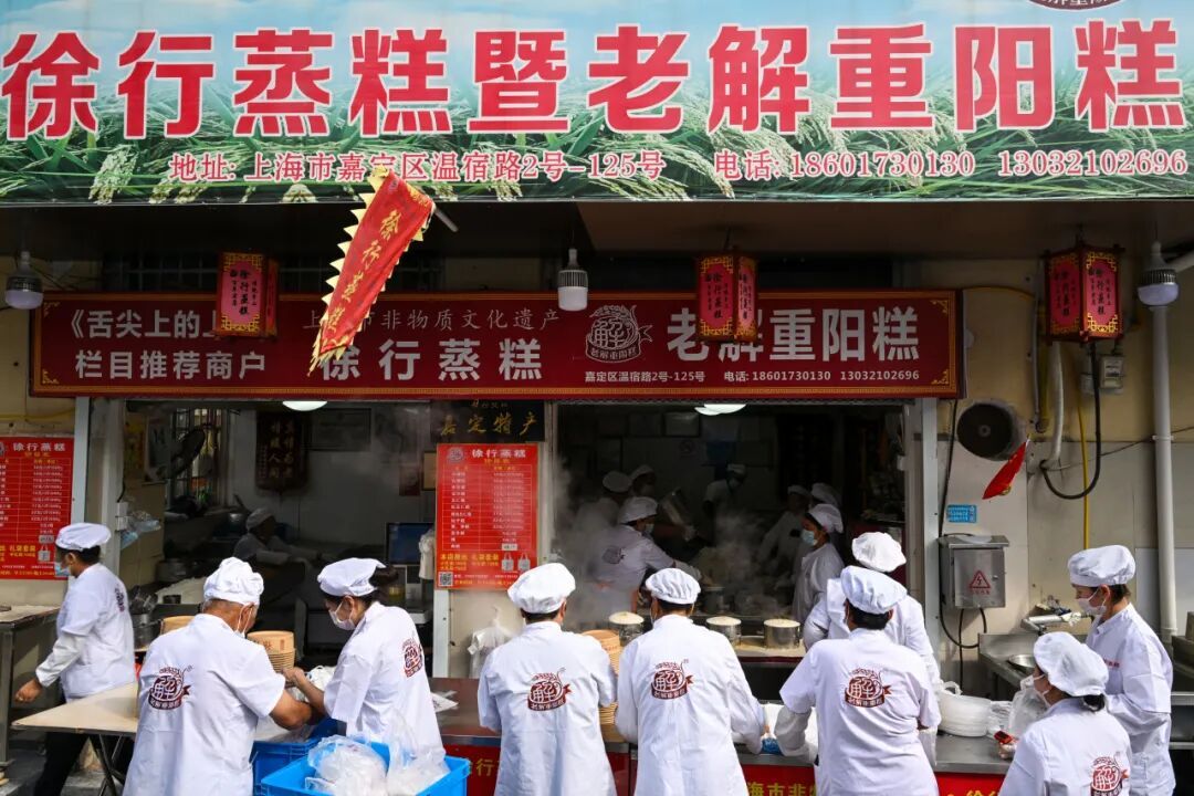 重阳临近,空气中弥漫着淡淡的米糕香气,上海市非物质文化遗产项目徐行蒸糕又迎来一年一度的销售高峰。