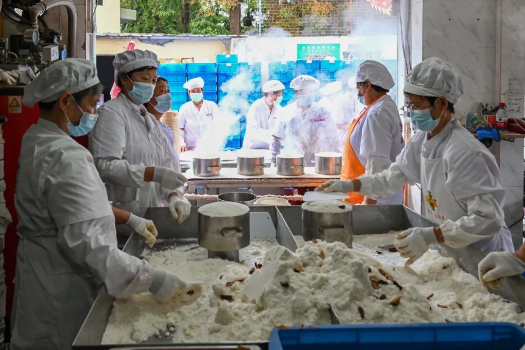 “目前日产蒸糕量已经达到了3000到3500份,远远高于平时。”徐行蒸糕区级非遗代表性传承人解荣光介绍,为应对订单高峰,从本月的13号开始,他便聘请了20多位本地蒸糕好手前来助阵,从早6点忙到晚6点,有时更是连续工作到晚上11点。