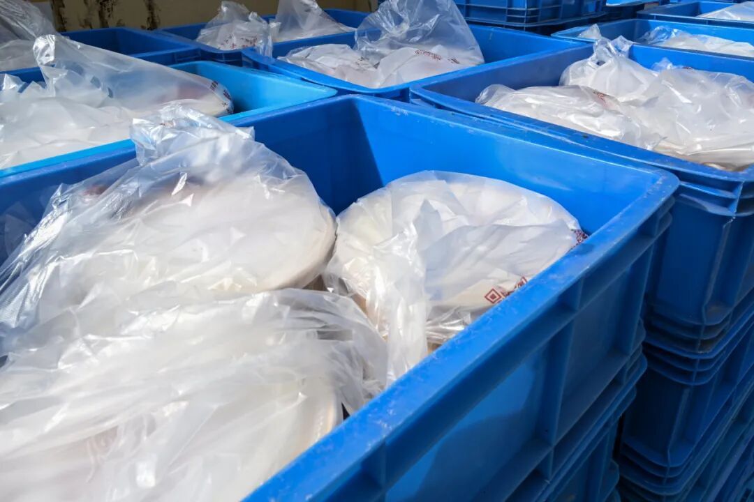 店铺外,一摞摞蓝色的货柜里装满蒸糕,垒起来有一人来高。每做完一批蒸糕,解荣光就在他的订购单上划去一笔。随着徐行蒸糕的知名度不断提升,每年慕名前来的顾客有增无减,甚至有人从浦东、苏州等地赶来。目前,店内的订购单已排到了重阳当天。