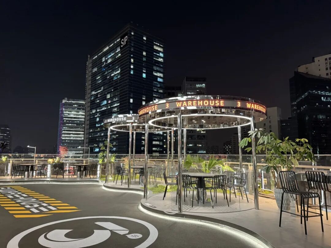无论是极具艺术感的异形立柱就餐区,还是配备全景玻璃的私密包厢,亦或是夜晚璀璨的露台区域,都将工业风的硬朗与自然元素的柔美巧妙融合,随便举手机都能拍出大片。