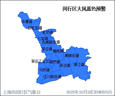 闵行预警发布中心2025年10月18日5时05分发布大风蓝色预警信号: