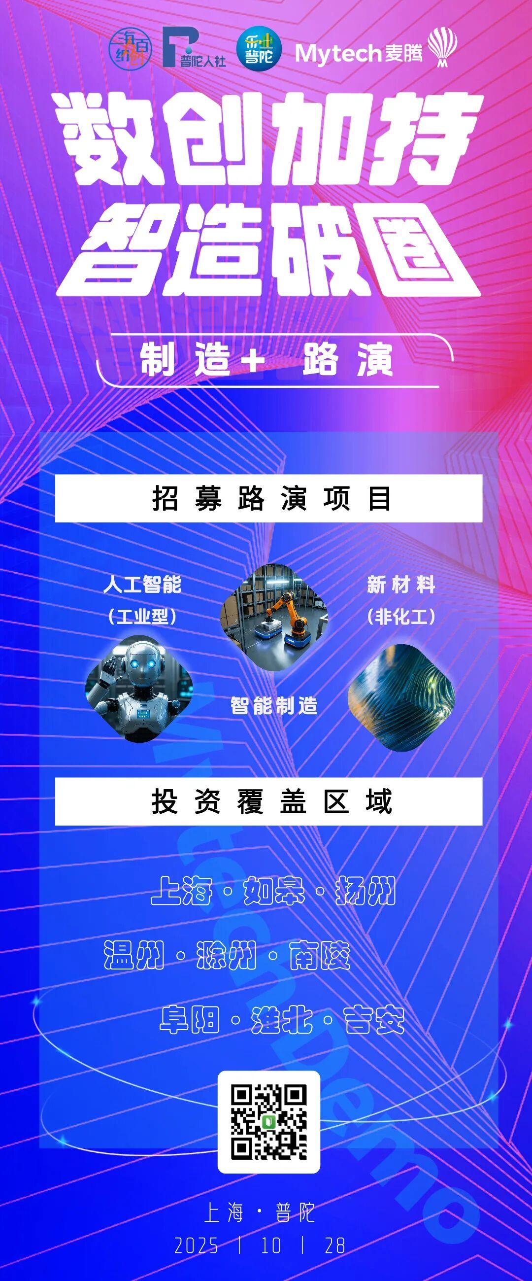 在全球制造业迈向智能化浪潮的当下,为精准服务区域内“AI+制造”领域创业者,助力企业解决发展中的实际挑战,搭建技术、资本、人才与产业的精准对接平台,普陀区人社部门将携手上海麦腾永联科创企业发展股份有限公司于近期举办“海纳百创·垂直路演”AI智能制造专场。