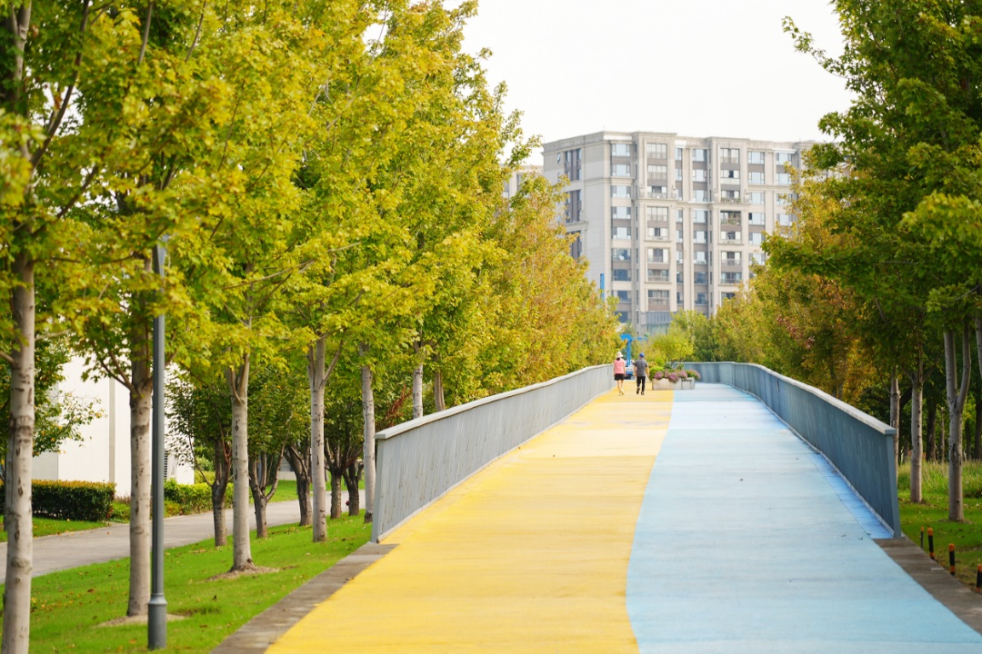 走进位于光复西路上的半马苏河公园云岭公园,已然呈现出一派秋色盎然的景象。数十棵樱花树率先“感知”到降温,树叶渐渐泛黄,洒满了整片草坪,走在落叶上,脚下沙沙作响。